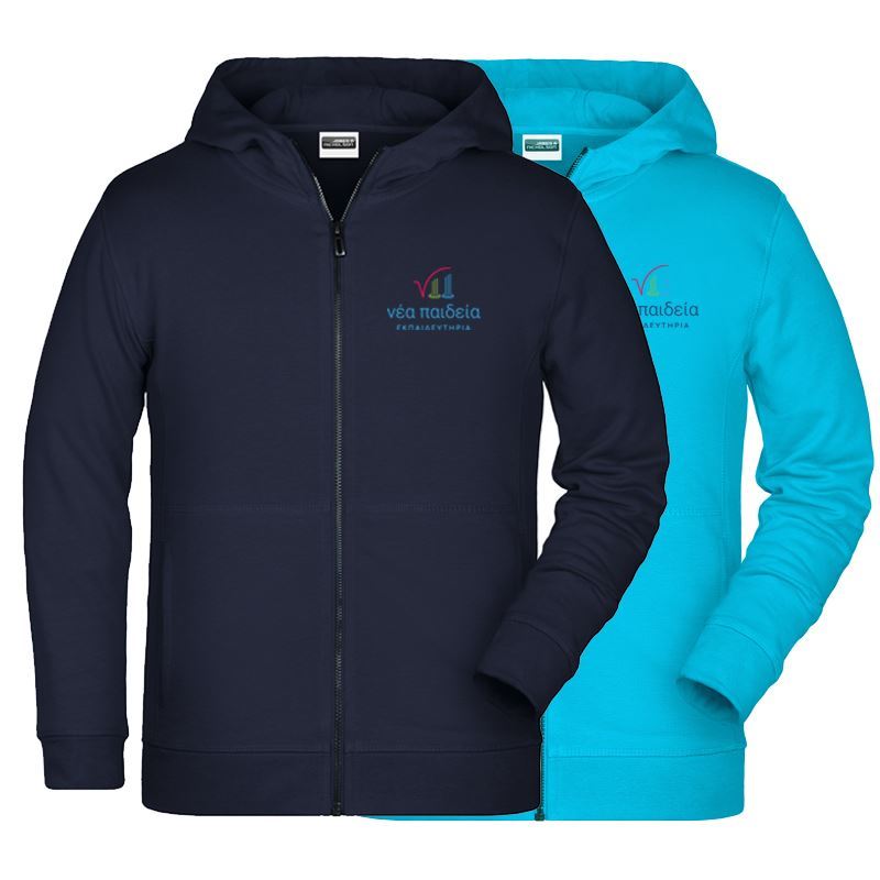 Hooded sweat jacket with zip. Outer fabric (300 g/m²): 85% cotton, 15% polyester. High-quality French terry 85% combed, ring-spun organic cotton. Two-layer hood without cord. Lateral dividing seams at the front, kangaroo pocket. Sleeve-bands with elasthane. YKK-zip. Tear off!®-label.
